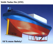 The Voith Turbo Fin is a rotating cylinder at the end of the skeg. It ensures