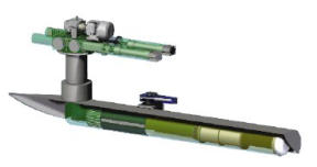 Thereafter design was started on a larger version capable of being towed at 12 knots at a depth of 300m.