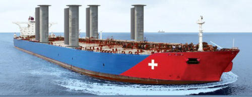 addition to her conventional diesel propulsion, 4 Flettner rotors